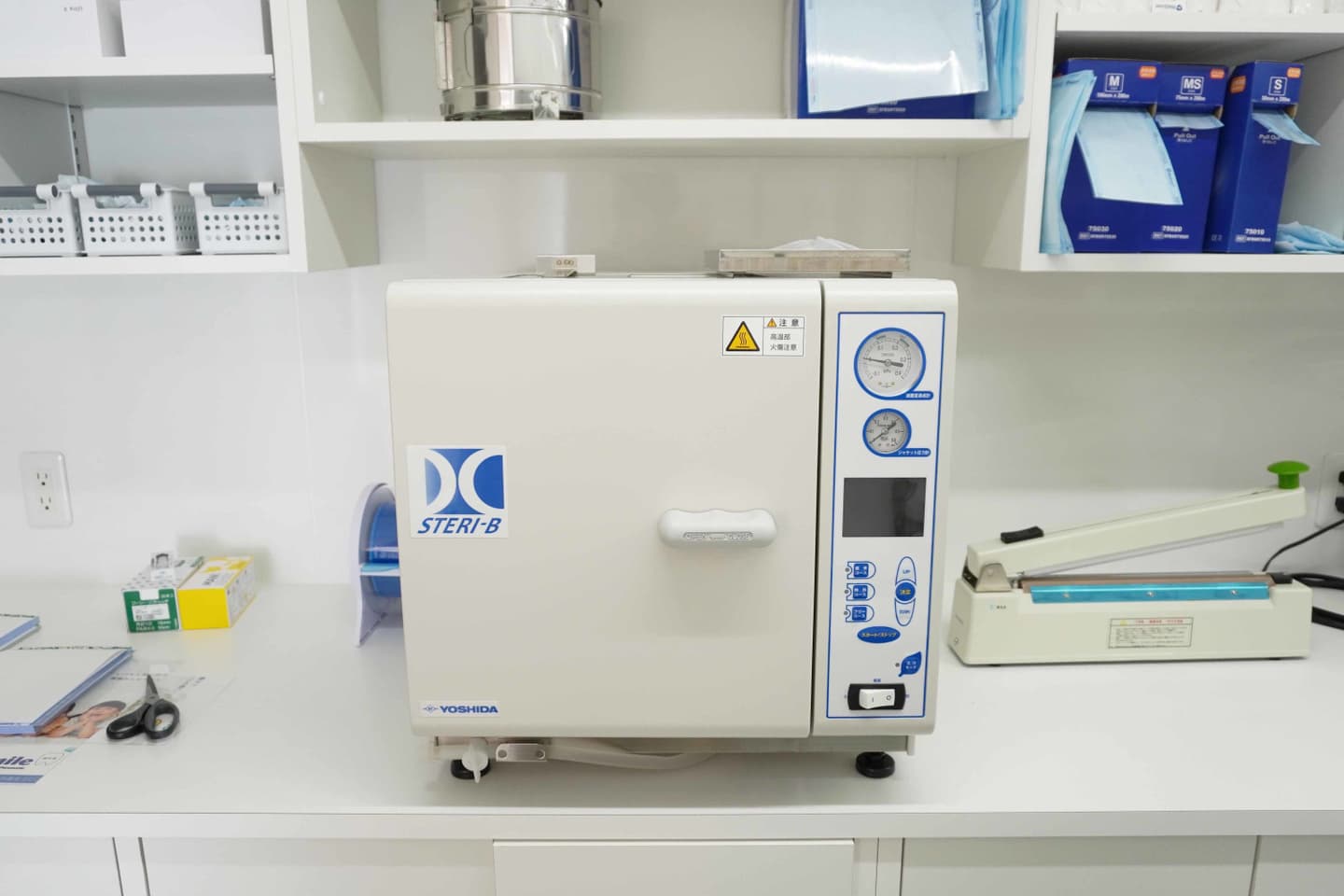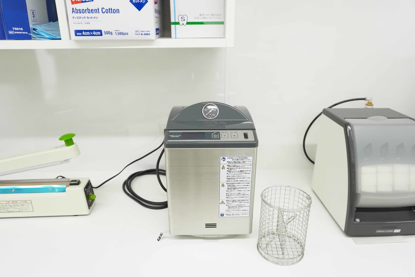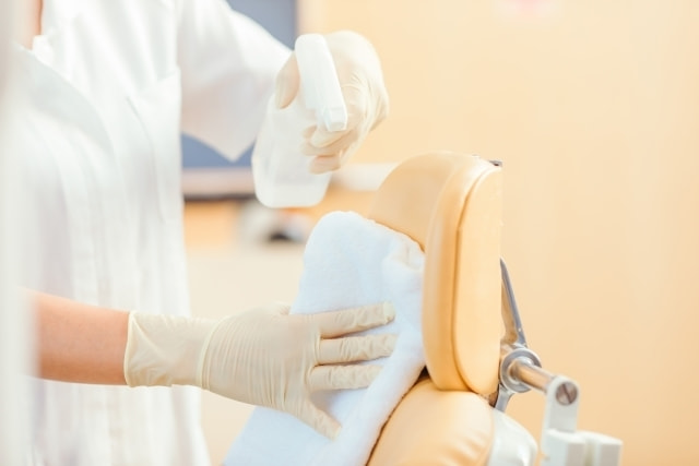 安心して治療を受けて頂くために、当院では感染症対策に力を入れております。治療器具は患者様ごとに交換し、使用後は消毒・滅菌を行います。患者様がお使いになるエプロン・コップは使い捨ての物を使用しております。